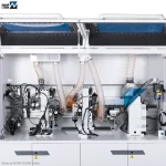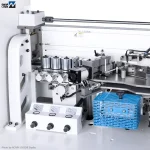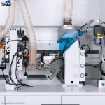 همچنین سیستم گرمایش قطعه کار برای تضمین چسبندگی بهتر و دوام بیشتر قطعات، بهویژه در شرایط مختلف محیطی، بهطور پیشرفته طراحی شده است. سیستم روغنکاری رانر بلاک اره و سیستم مترخوان نوار (کانتر) از دیگر امکانات این دستگاه هستند که به بهبود عملکرد و دقت دستگاه در حین کار کمک میکنند. این دستگاه از سیستم کنترلکننده ایستگاهها با استفاده از اینکودر بهره میبرد که دقت و کارایی دستگاه را بهطور قابل توجهی افزایش میدهد. نحوه تنظیم فک دستگاه بهصورت برقی است، که این امکان را برای اپراتورها فراهم میآورد تا تنظیمات لازم را بهسادگی و با دقت بالا انجام دهند. بستهبندی دستگاه ابعادی حدود 5000×1000×1560 دارد.
